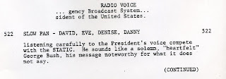 It should be noted that after complaints were received regarding the allegedly Reaganesque voice of the Commander-in-Chief, the soundtrack was updated for future airings and home video releases.[xiii] The voice was replaced by a more generic-sounding “president.” Hume’s script direction actually specifies that the voice should be more Bush than Reagan: “He sounds like a solemn, ‘heartfelt’ George Bush…”[xiv]