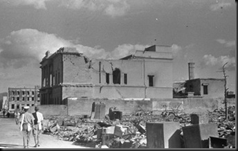 Those buildings constructed of steel and concrete in Hiroshima were best able to stand the explosion and hence protected their contents to some degree. …The explosions cracked the exteriors, tore the cement floors into pieces and the fire which followed gutted the buildings of all else. Those buildings constructed of reinforced concrete only, such as the Teikou [sic] Bank, were damaged to a larger degree. Those built of wood or brick were completely demolished.